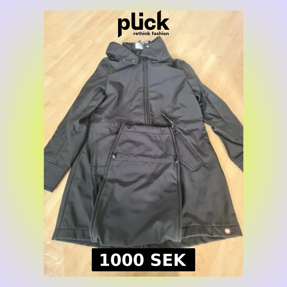 En Softshell jacka från Wombat som man med fördel kan ha i regn och vind under hela året. Jackan har fyra användningsområden, graviditet, bära barn på mage, bära barn på ryggen samt som vanlig jacka. Dessutom kan du vika ihop den och bära den med en rem som en axelväska. I de sista stadierna av graviditeten när du inte längre kan stänga jackan, koppla då på extradelen i dragkedjan så har du plats för din gravidmage. Jackan möjliggör även bärande av ditt barn på mage och rygg. Extradelen kan anp