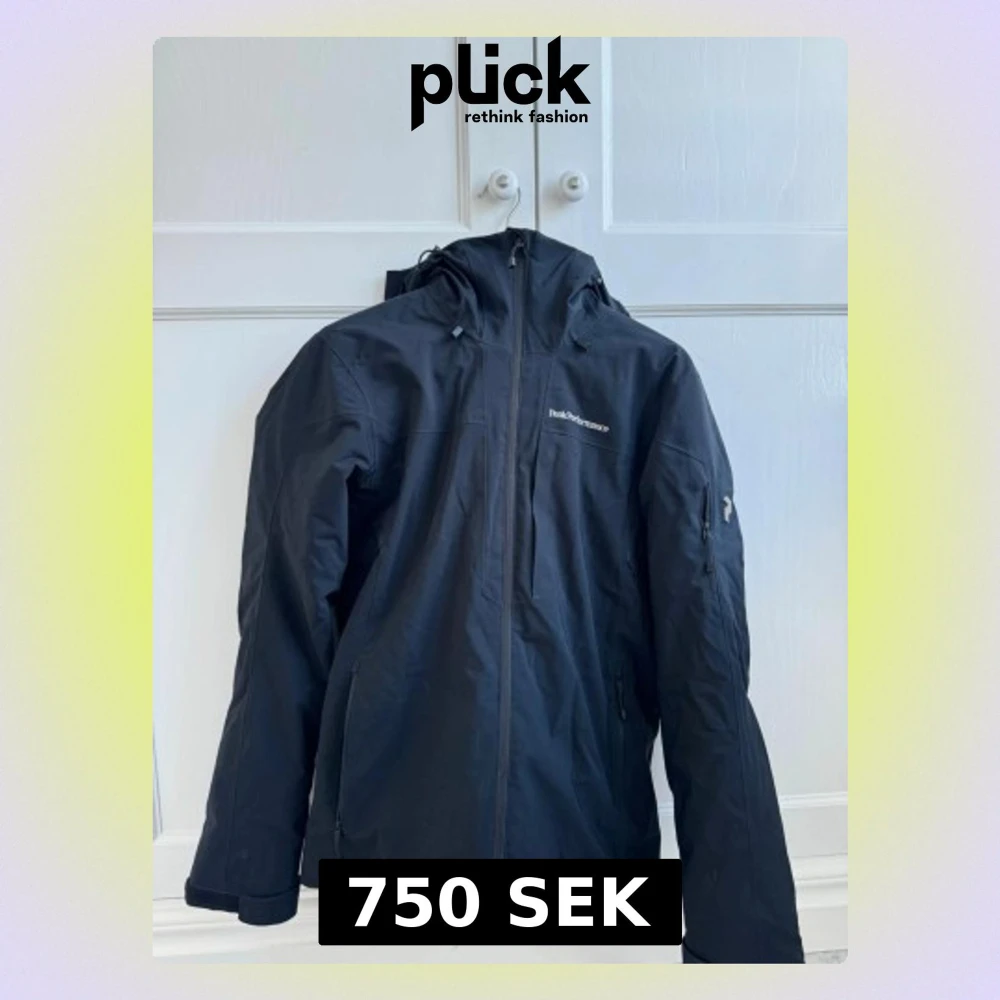 Snygg svart regnjacka från Peak Performance med huva och dragkedja framtill. Jackan har två sidofickor med dragkedja och diskret logga på bröstet. Tillverkad i ett vattenavvisande material som passar perfekt för regniga dagar. Den är även fodrad.
