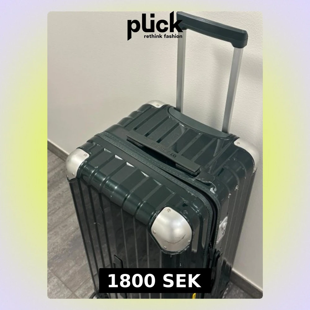 Resväska i mörkgrön färg med fyra hjul och teleskophandtag. Väskan har ett kombinationslås och bärhandtag på både ovansidan och sidan. Insidan är fodrad med svart tyg och har packband samt ett avdelande fack med dragkedja. Storlek 780x390x390 och 105L