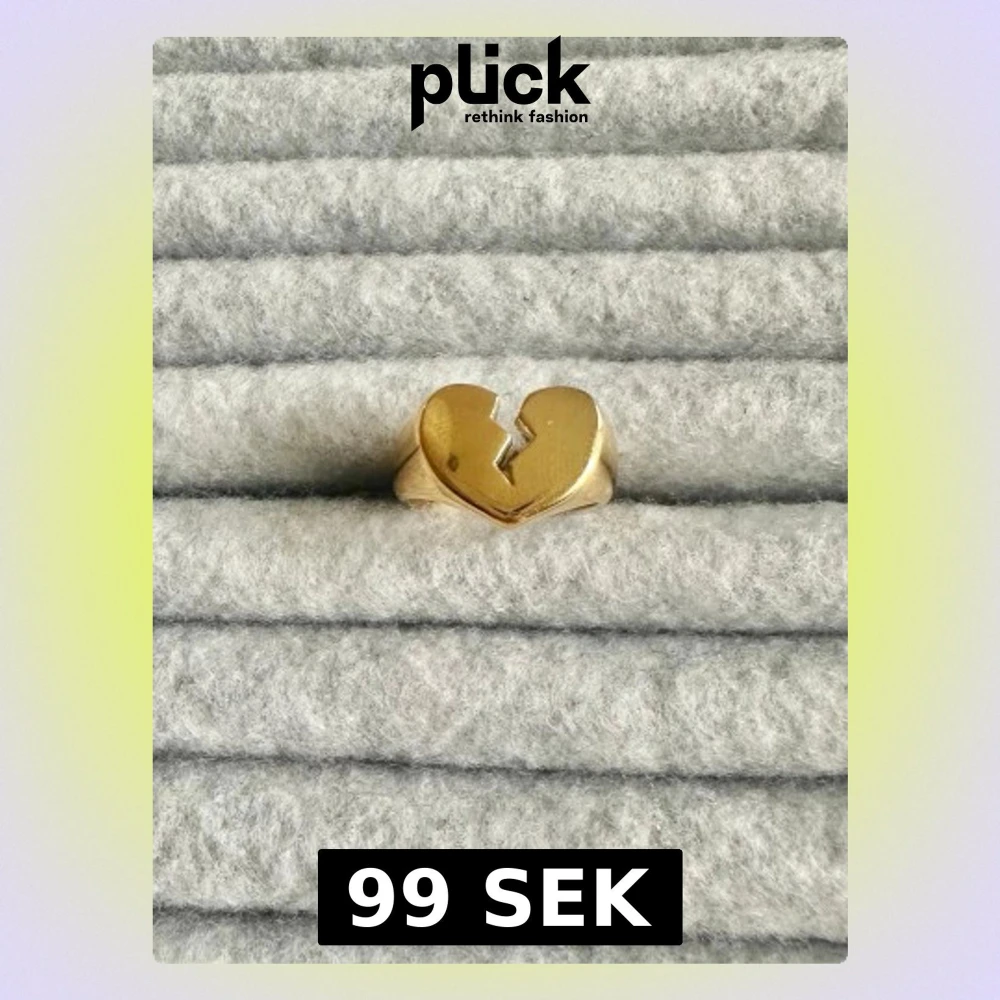 Snygg guldfärgad ring i metall med ett brustet hjärta som motiv framtill. Ringen har en chunky design och glänsande finish som ger en cool statement-look. Perfekt för dig som gillar unika accessoarer med attityd.