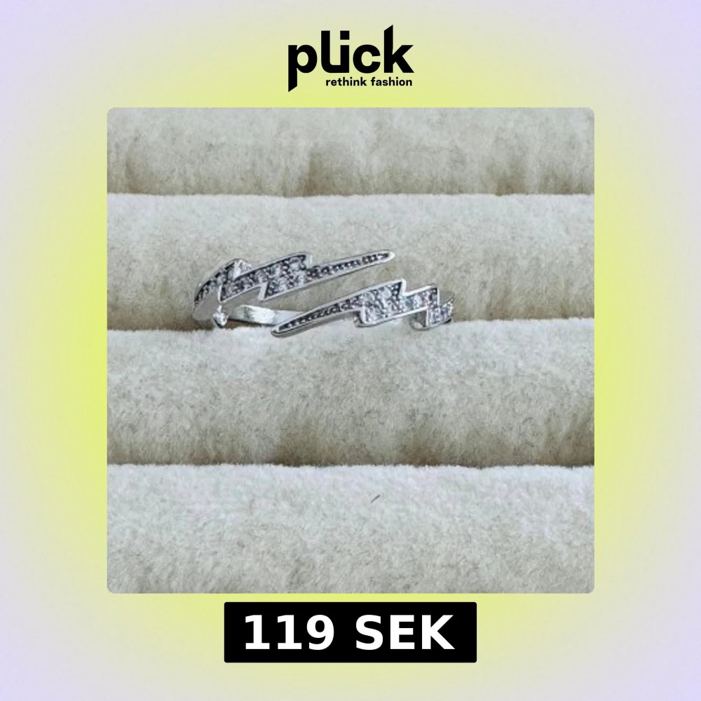 Cool ring i silverfärg med blixtformad design och små gnistrande stenar längs hela ovansidan. Perfekt för dig som gillar unika och trendiga smycken med lite edge. Ringen har en öppen form och är riktigt snygg som statement-piece.