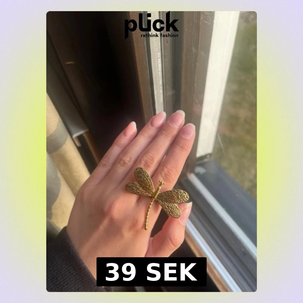 Unik ring i guldfärgad metall med en stor trollslända som motiv. Ringen har detaljerade vingar och kropp som ger en cool och bohemisk känsla. Perfekt för dig som gillar statement-smycken och naturinspirerad design.