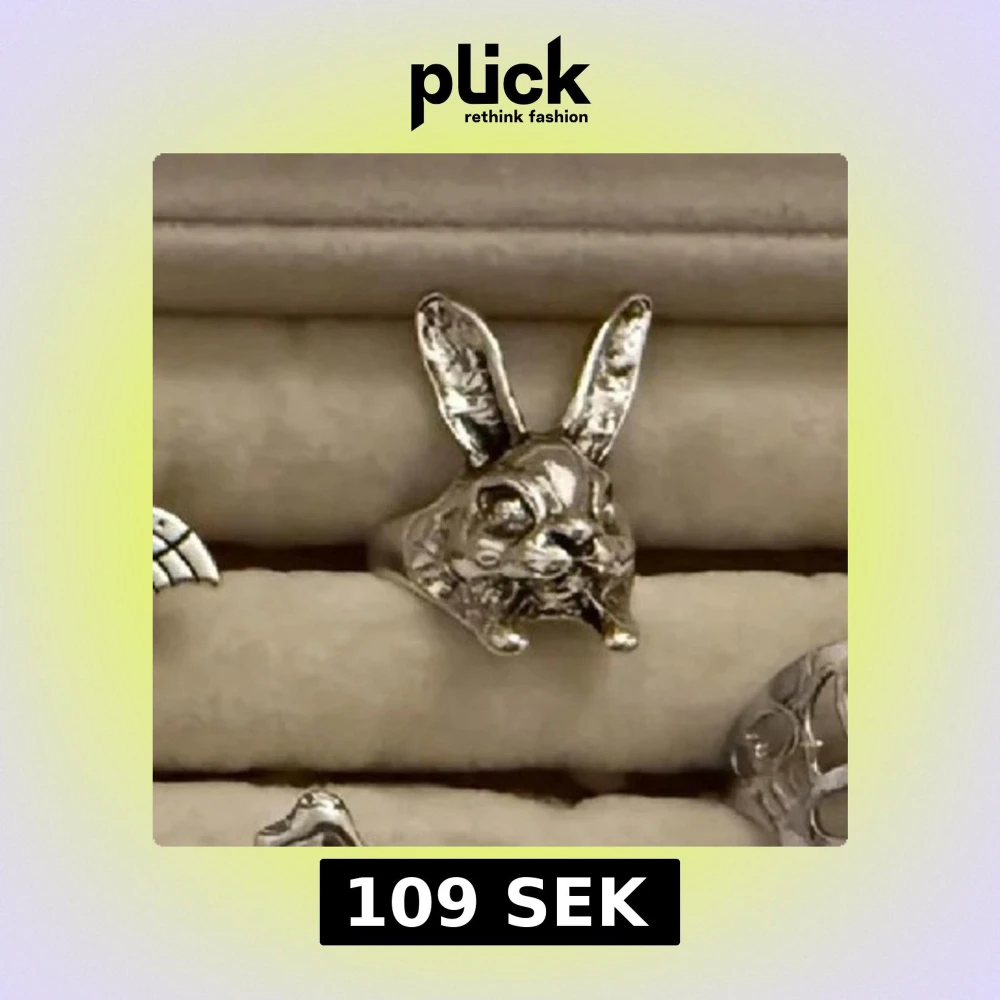 Unik ring i silverfärgad metall med ett detaljerat kaninhuvud som motiv. Ringen har upphöjda öron och tydliga ansiktsdrag, vilket ger ett lekfullt och coolt uttryck. Perfekt för dig som gillar djur och vill sticka ut med dina accessoarer.