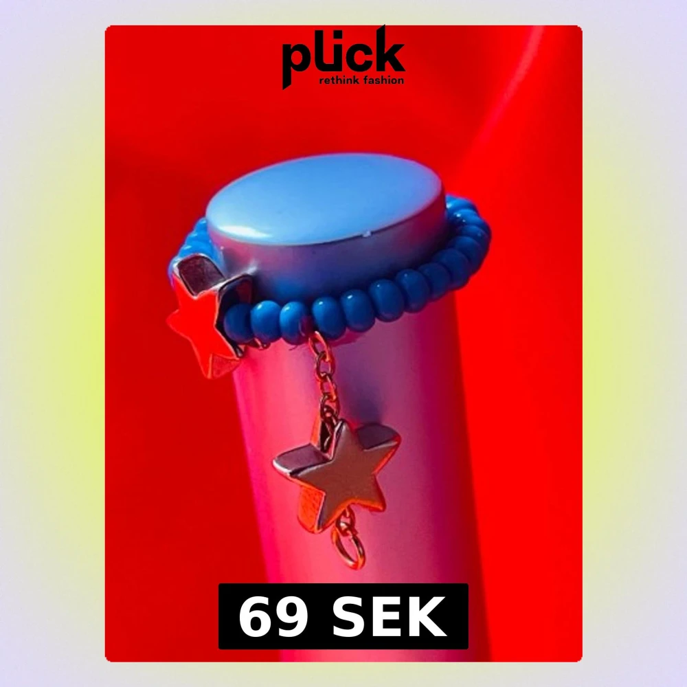 Cool ring med små turkosa pärlor och två guldiga stjärnhängen. Ringen är elastisk och har en lekfull design som sticker ut. Perfekt för dig som gillar färg och unika detaljer. Stjärnorna hänger i en liten kedja för extra effekt. Den går att få i vita pärlor och silver stjärnor också.