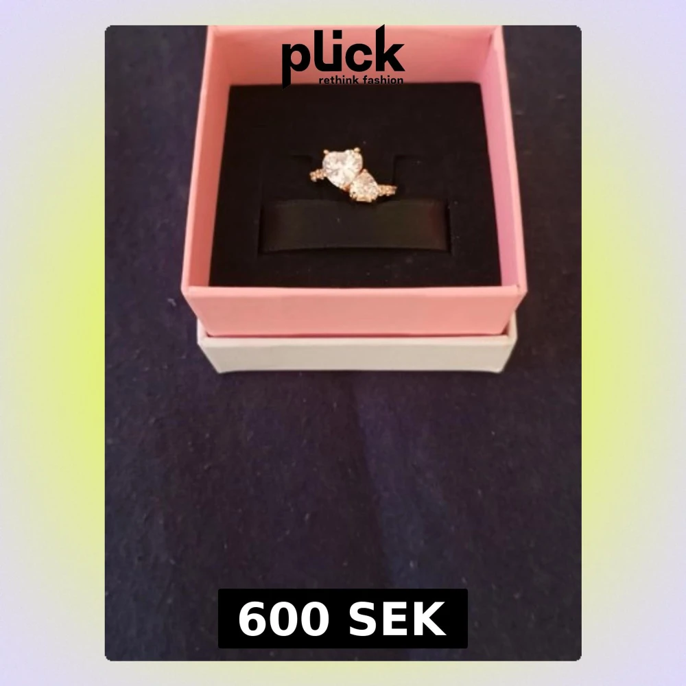 Ordinarie pris 1299kr. Helt ny och är helt oanvänd. Med orginal paket. Snygg guldfärgad ring från Pandora med två stora hjärtformade klara stenar i centrum och mindre gnistrande stenar längs bandet. Perfekt för dig som gillar bling och romantiska detaljer. Ringen har en elegant och modern design som verkligen sticker ut.
