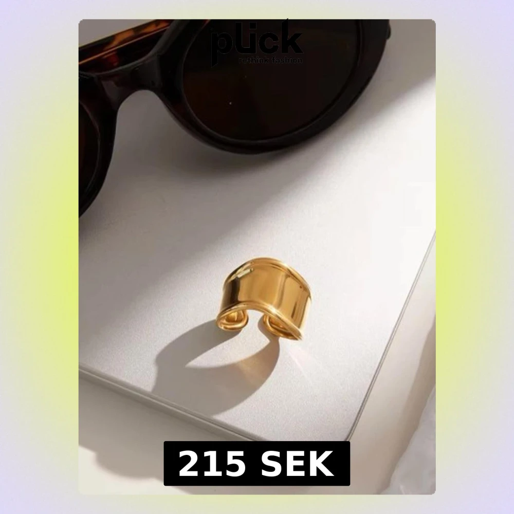 Vattentålig Stål RingDenna eleganta ring tillverkade i rostfritt stål med 18k PVD-guldplätering – de är både stilrena och slitstarka. Smycket är hypoallergent och vattentåligt – perfekt för daglig användning, även i dusch, träning eller på resa och är lämpliga även för känslig hud. Material: Rostfritt stål Plätering: 18k guldplätering (PVD) Storlek: One Size (Ca 7) Vikt: 4-5 g