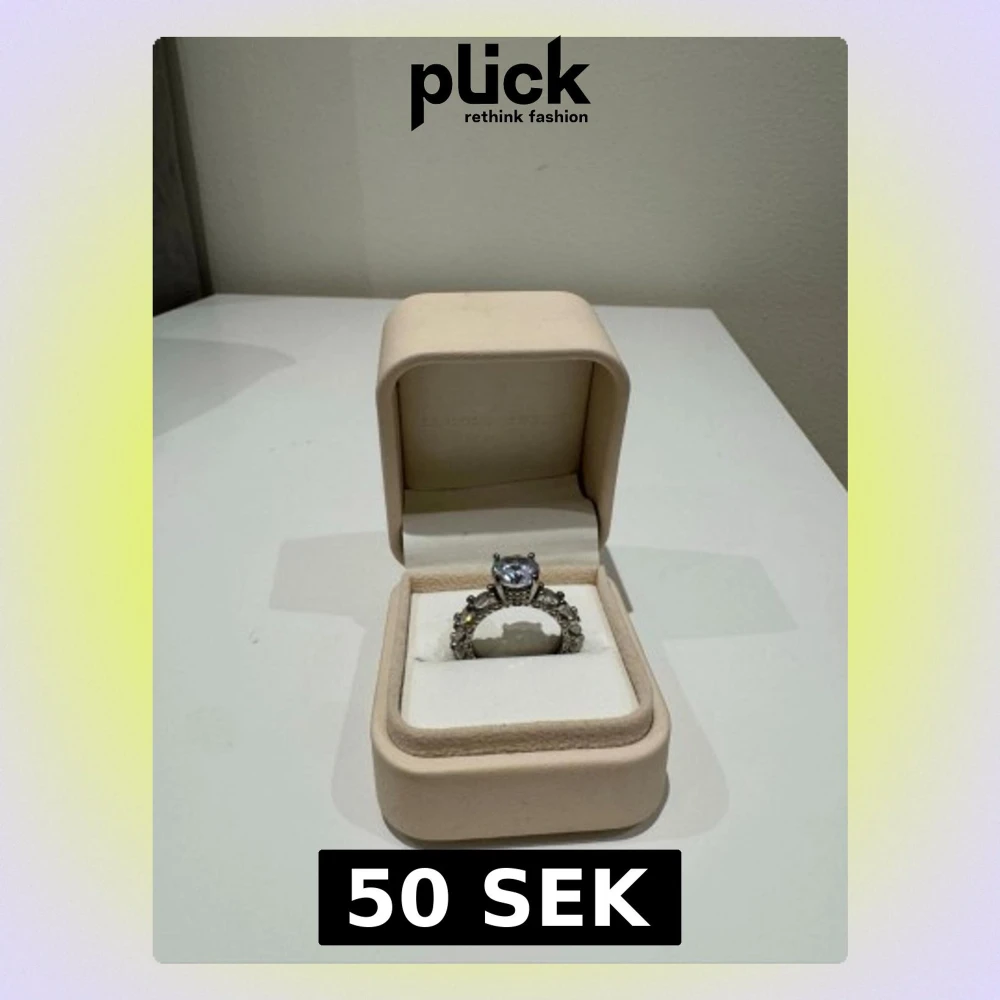 Säljer en elegant silverring från Pandora med en stor klar sten i mitten och mindre stenar längs bandet. Ringen har en klassisk och lyxig design som verkligen fångar ögat. Perfekt för dig som gillar gnistrande detaljer och tidlös stil.