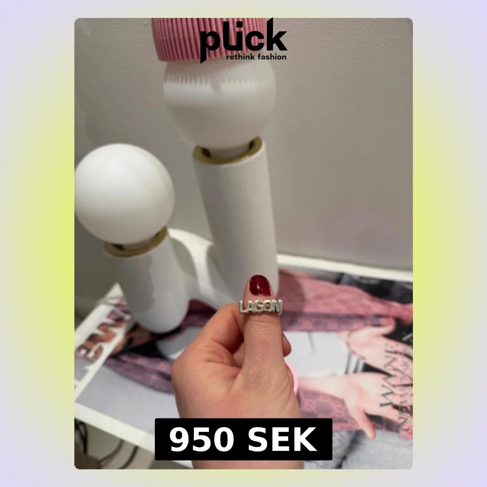 Cool silverfärgad ring med texten 'LAGOM'. Ringen har en enkel och stilren design som passar perfekt för dig som gillar statement-smycken. Nypris 1100kr - säljer för 950kr. Storleken är 7,5 (55-56 cm). Påse finns kvar.