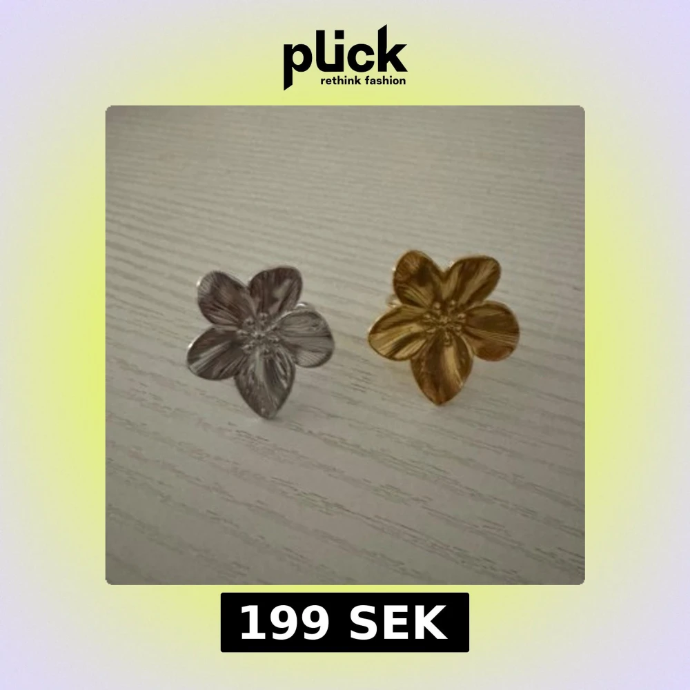 Två ringar i form av blommor, en i guldfärg och en i silverfärg. Båda har detaljerade blomblad och en blank finish. Perfekta för dig som vill ha en unik accessoar med naturinspirerad design.