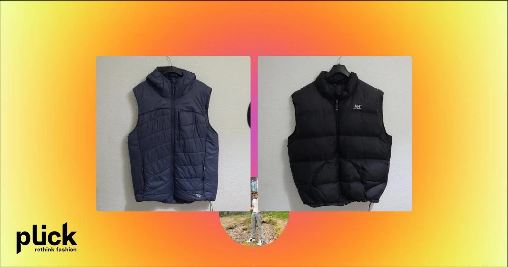 Svart dunväst med huva och röda detaljer - Snygg svart dunväst med avtagbar huva och röda dragkedjor på fickorna. Västen har quiltad design och vit insida vid kragen. Perfekt för lager-på-lager och håller dig varm under kyliga dagar.
