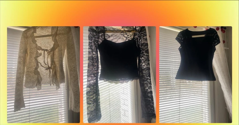 Svart spetsblus med lång ärm - Säljer en svart blus med transparenta spetsärmar och detaljerad spets upptill. Toppen har en croppad passform och vacker spetskant nedtill. Perfekt för dig som gillar en edgy och trendig stil.