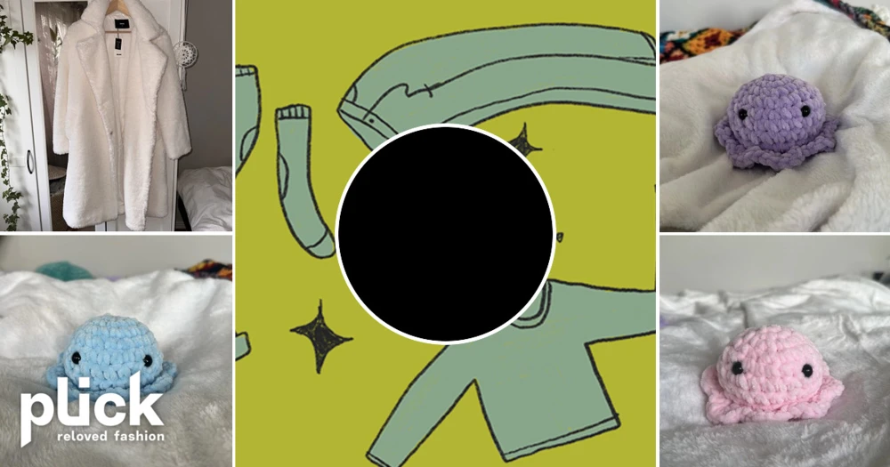 Virkad bläckfisk  - En liten virkad bläckfisk som min syster har virkat.  Man ser ungefär storleken på sista bilden bredvid min hand.