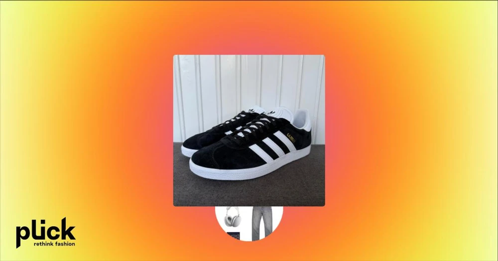 Svarta Adidas Gazelle  - Säljer ett par klassiska Adidas Gazelle sneakers i svart mocka med vita detaljer och de ikoniska tre ränderna på sidan. Skorna har snörning, vit sula och guldtext på sidan. Perfekta för en stilren och sportig look.