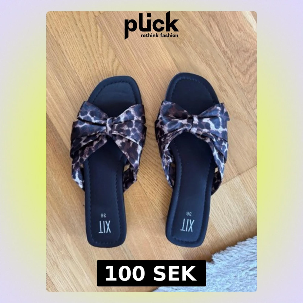 Säljer ett par trendiga sandaler från XIT i storlek 36. De har leopardmönstrad textil med stora rosetter framtill och svart sula. Perfekta för dig som vill sticka ut med ett djurmönster och gillar en bekväm slip-in modell.