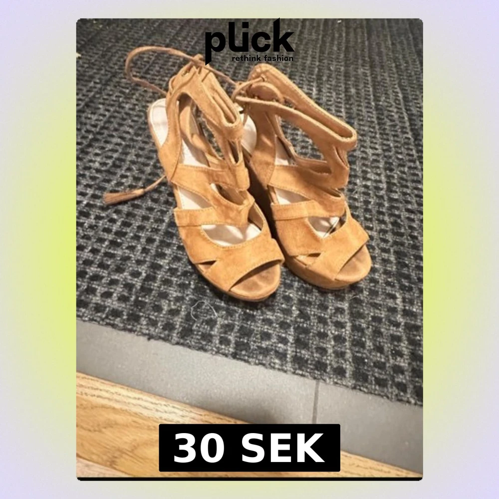 Säljer ett par snygga sandaler med kilklack i brun mocka. De har flera remmar och knytning runt ankeln för en cool look. Perfekta för dig som vill ha både höjd och komfort. Passar till många olika outfits och ger en trendig touch.