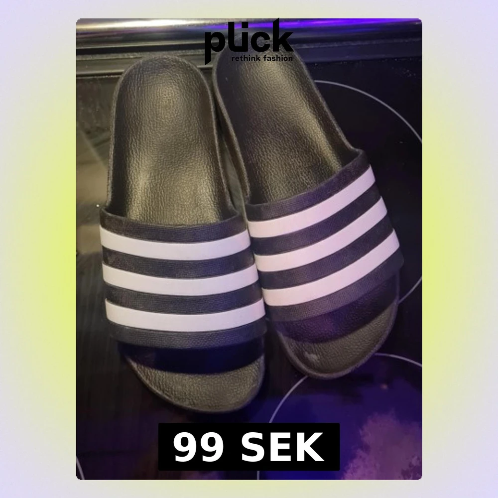 Svarta Adidas badtofflor med vita ränder