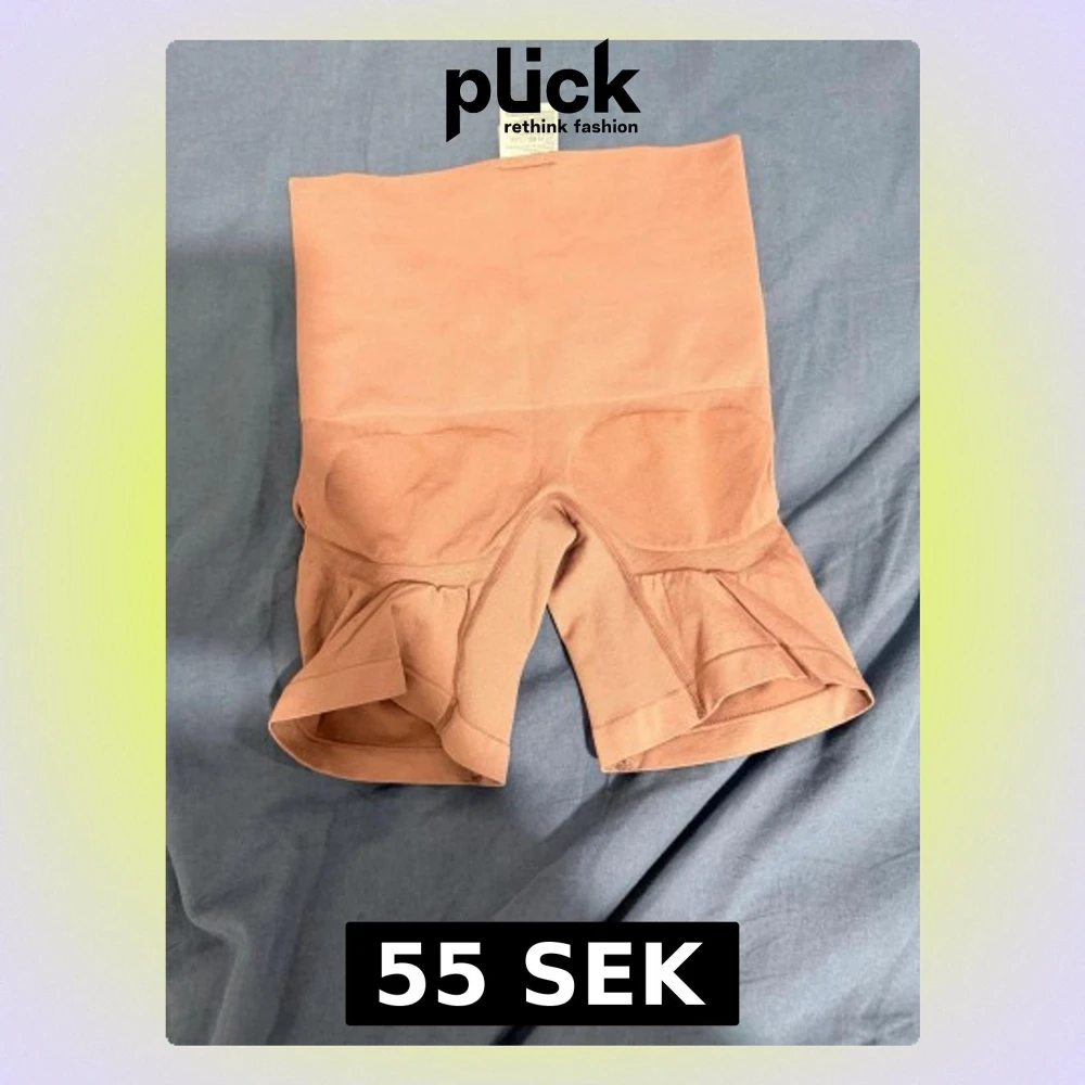 Säljer ett par nude shapewear shorts med hög midja och sömlös design. De är tillverkade i ett stretchigt material som formar och slätar ut siluetten. Perfekta under tighta kläder för en smidig look. Färgen är ljus beige vilket gör dem diskreta under de flesta plagg.