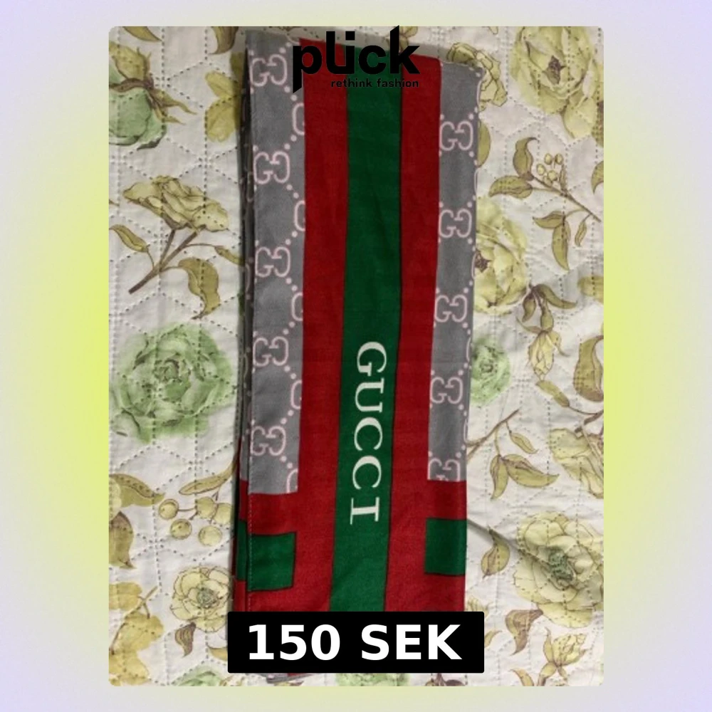 Snygg Scarf med klassiskt logomönster i ljusrosa på grå botten. Använd sparsamt. Ej äkta.