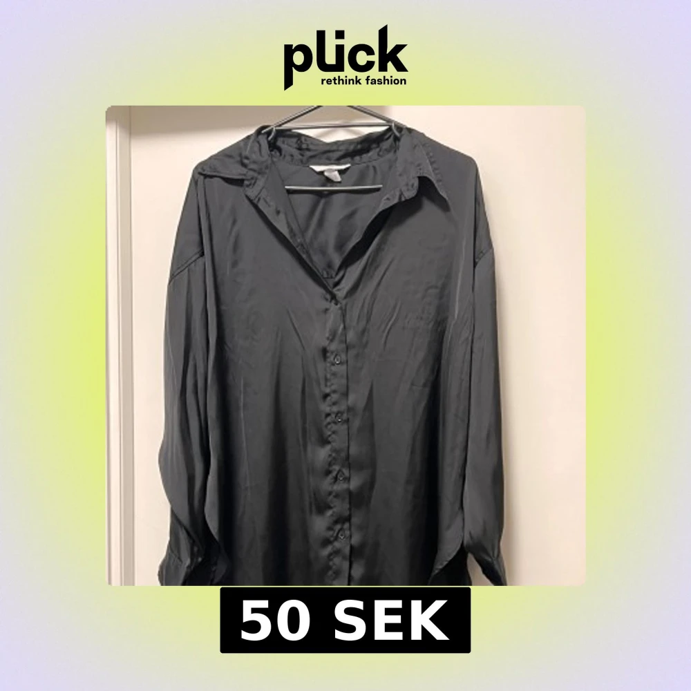 Snygg svart skjorta med oversized passform och klassisk krage. Tillverkad i mjukt och glansigt silke, perfekt för dig som gillar en chill och stilren look. Skjortan har långa ärmar och knappar framtill. Enkel att matcha med jeans eller kostymbyxor.