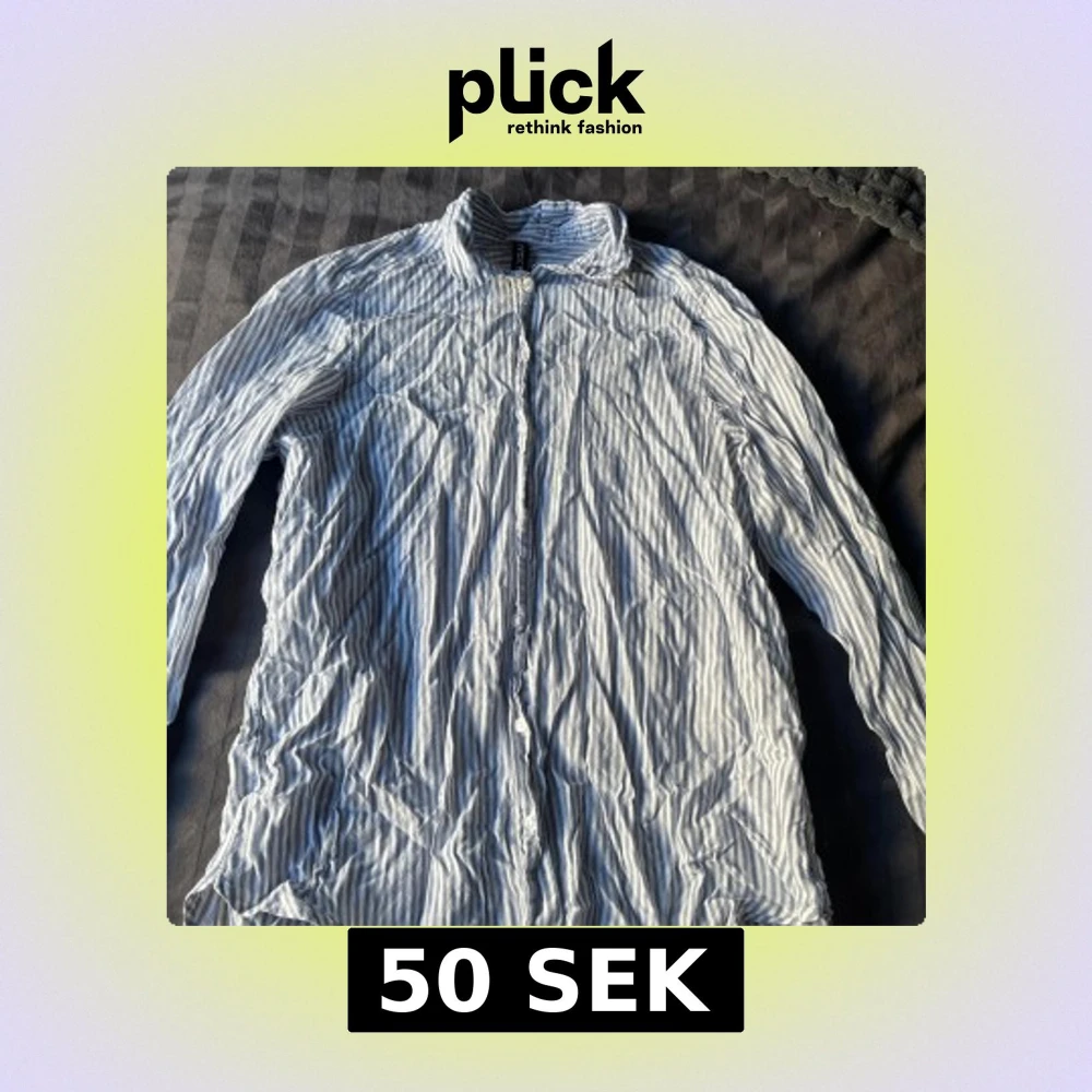 Säljer en stilren blå- och vitrandig skjorta från H&M. Skjortan har långa ärmar och knappar längs framsidan. Använd men syns inte. Tyvärr för liten för mig. Den är lite mer åt de mindre hållet i storleken.
