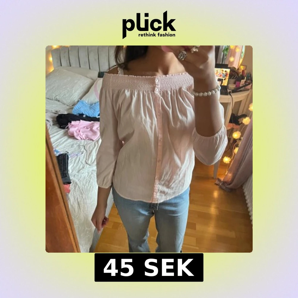 Supersöt ljusrosa offshoulder blus från Rich & Royal i mjuk bomull. Bra skick!