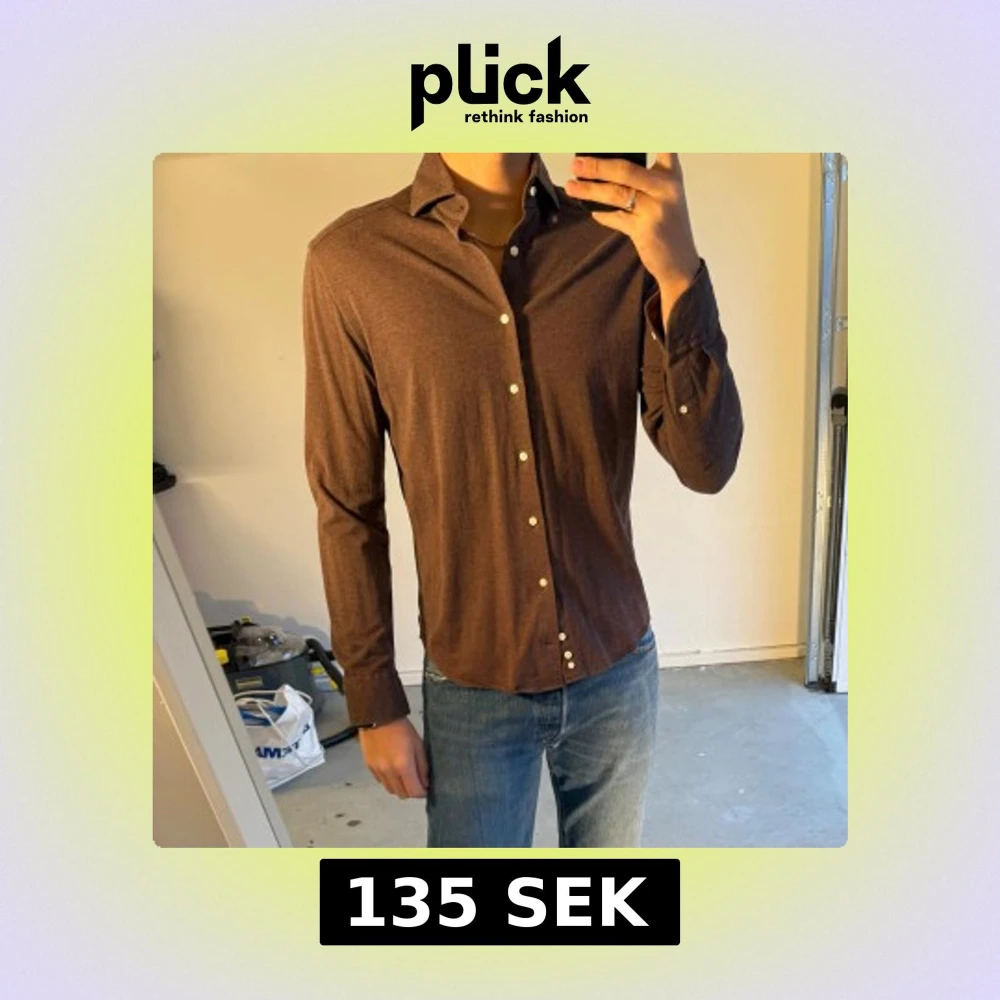 Brun långärmad skjorta från La Chemise Norrmalm, slim fit. Nypris 898kr. Jag är 190cm och bär vanligtvis L, skjortan är därför för liten på mig, sitter perfekt om du vanligtvis bär Medium.