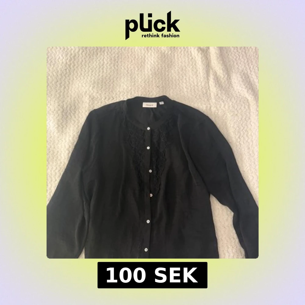 Svart skjorta från Viveca N i storlek 40. Skjortan har långa ärmar, knappar framtill och snygga spetsdetaljer vid bröstet. Enkel och stilren design som passar perfekt till jeans eller kjol.