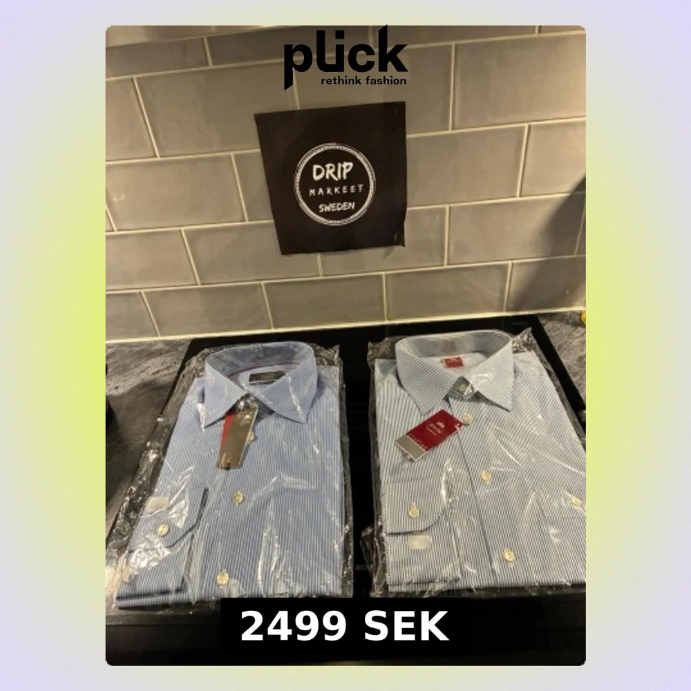 Klassiska blå-vitrandiga skjortor från Eton köpt för 3500 kr styck.kommer i paketpris med vit knappstängning och krage. Skjortorna har lång ärm och är tillverkad i bomull för en skön och stilren känsla. Perfekt för dig som gillar tidlös design och snygga detaljer.