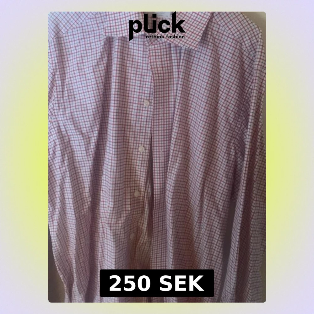 Säljer en klassisk rutig skjorta från Eton i storlek 45/17¾. Skjortan har ett mönster med röda och blå rutor på vit botten, långärmad och med knappar framtill. Perfekt för dig som gillar stilrena och tidlösa plagg. Materialet är mjuk bomull.