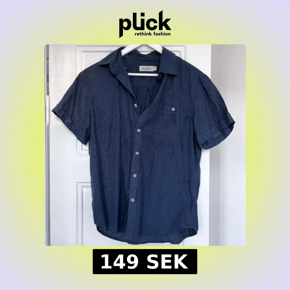 Snygg marinblå skjorta i linneblandning. Skjortan har korta ärmar och knappar framtill samt en bröstficka. Perfekt för en avslappnad stil. Hör av dig vid minsta fråga eller fundering!