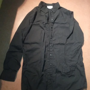 Svart skjorta med långa ärmar, krage och knappar framtill. Går över rumpan och lite till. Storlek S men ganska stor. 100% bomull. Tvättad en gång, så i nyskick. Köpt för 399 kr, säljer för 50 kr plus ev frakt 🖤