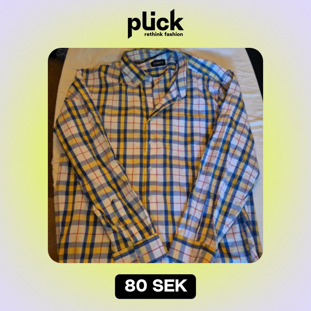 Säljer en snygg rutig skjorta från OHMYS i storlek XL. Skjortan har ett färgglatt mönster i blått, gult och vitt med inslag av rött. Den är långärmad och har knappar längs hela framsidan. Perfekt för både vardag och fest!