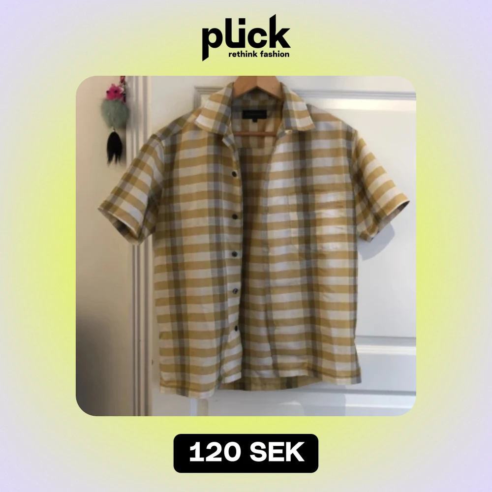 Gul rutig skjorta i storlek M, Ă€ven fast den passar mer som en L. Samma stil som Jared Leto hade i Requiem for a dreamđ±