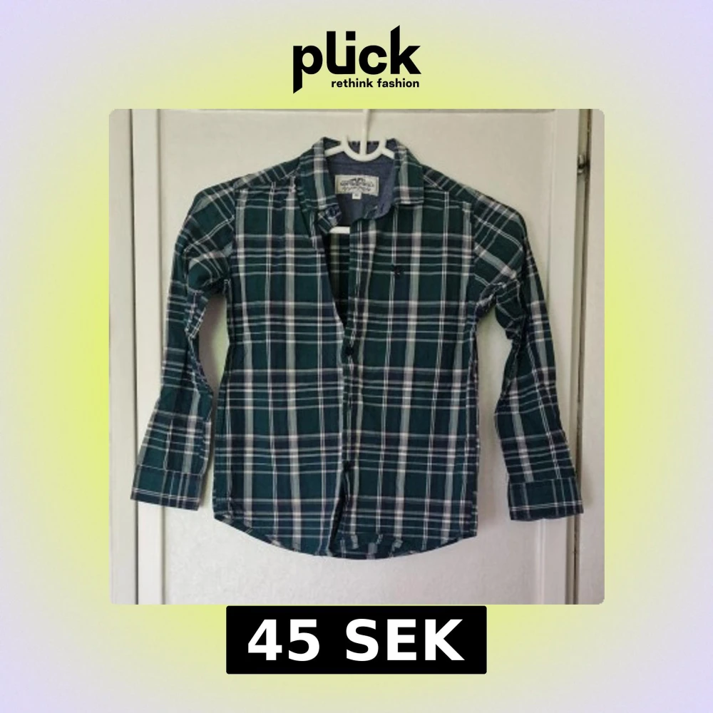 Snygg grön och vit rutig skjorta från Hampton Republic i storlek 128. Skjortan har klassisk krage, långa ärmar och knäppning framtill. Perfekt för en chill och stilren look. Tillverkad i mjuk bomull som känns skön mot huden.