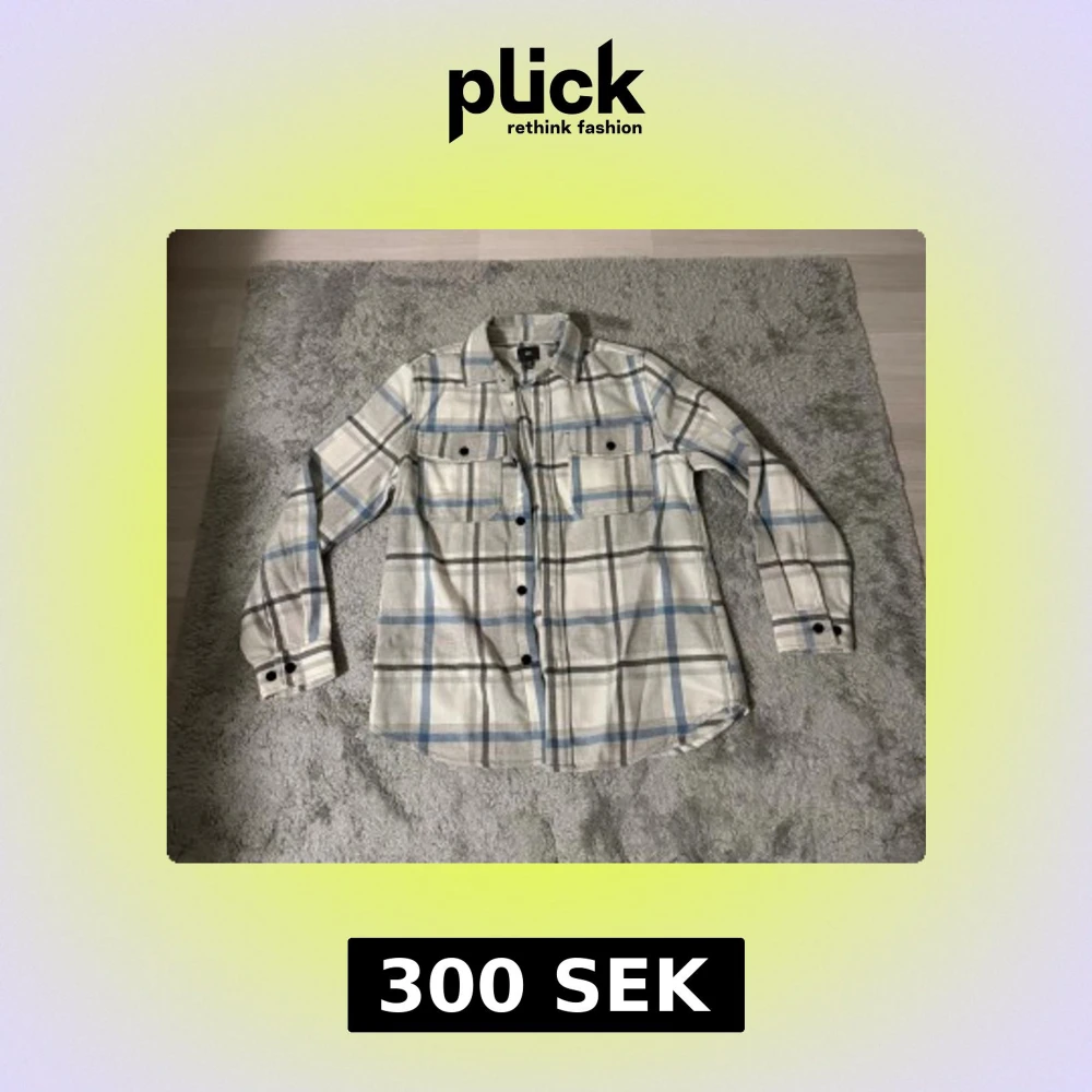 Säljer en snygg rutig skjorta från H&M i storlek M. Skjortan har en cool färgkombination med grå, vit och blå toner, klassisk krage och svarta knappar. Två bröstfickor med knappstängning ger extra stilpoäng. Perfekt för dig som gillar avslappnad och trendig look.