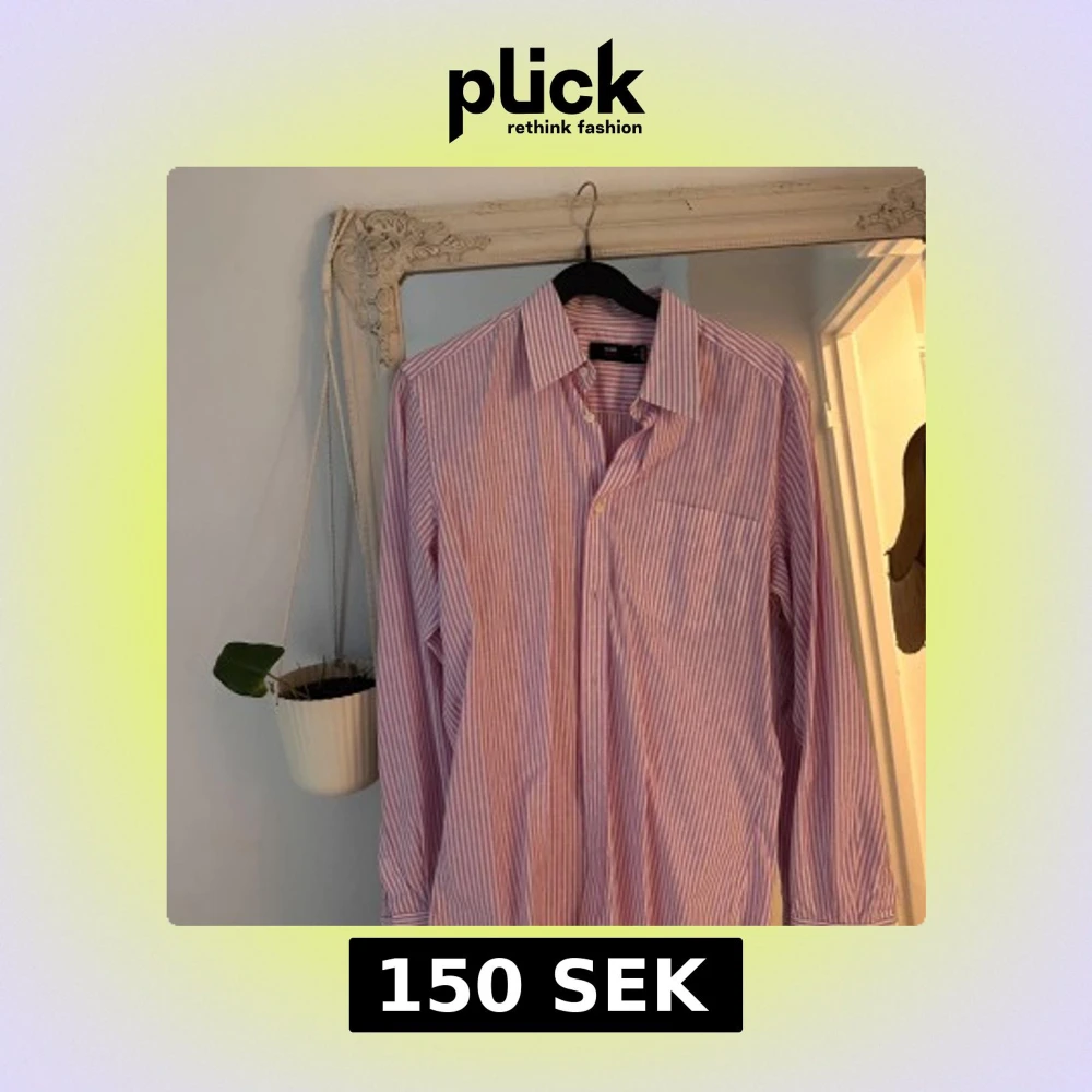 Säljer en långärmad skjorta från H&M med rosa och vita vertikala ränder formade som blommor typ.