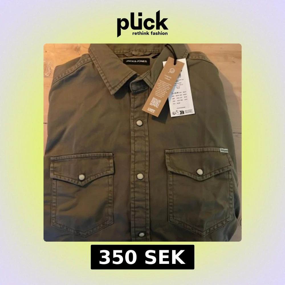 Snygg olivgrön skjorta från Jack & Jones med två bröstfickor och knappar framtill. Perfekt för en avslappnad stil. Skjortan har långa ärmar och en klassisk krage.