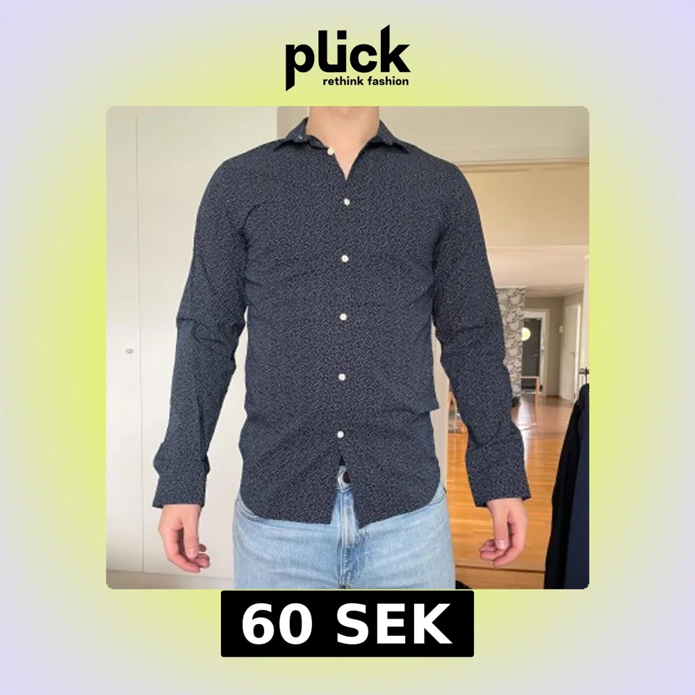 Mörkblå mönstrad långärmad skjorta i strl S/38 från Jack & Jones Premium. Använd några gånger
