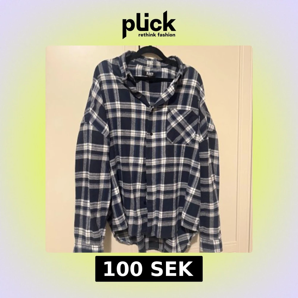 Snygg blå och vit rutig skjorta med klassisk krage och bröstficka. Perfekt för en avslappnad stil. Skjortan har långa ärmar och knappar framtill. Mjuk skjorta ( använt endast några gånger Ordpris 300kr )