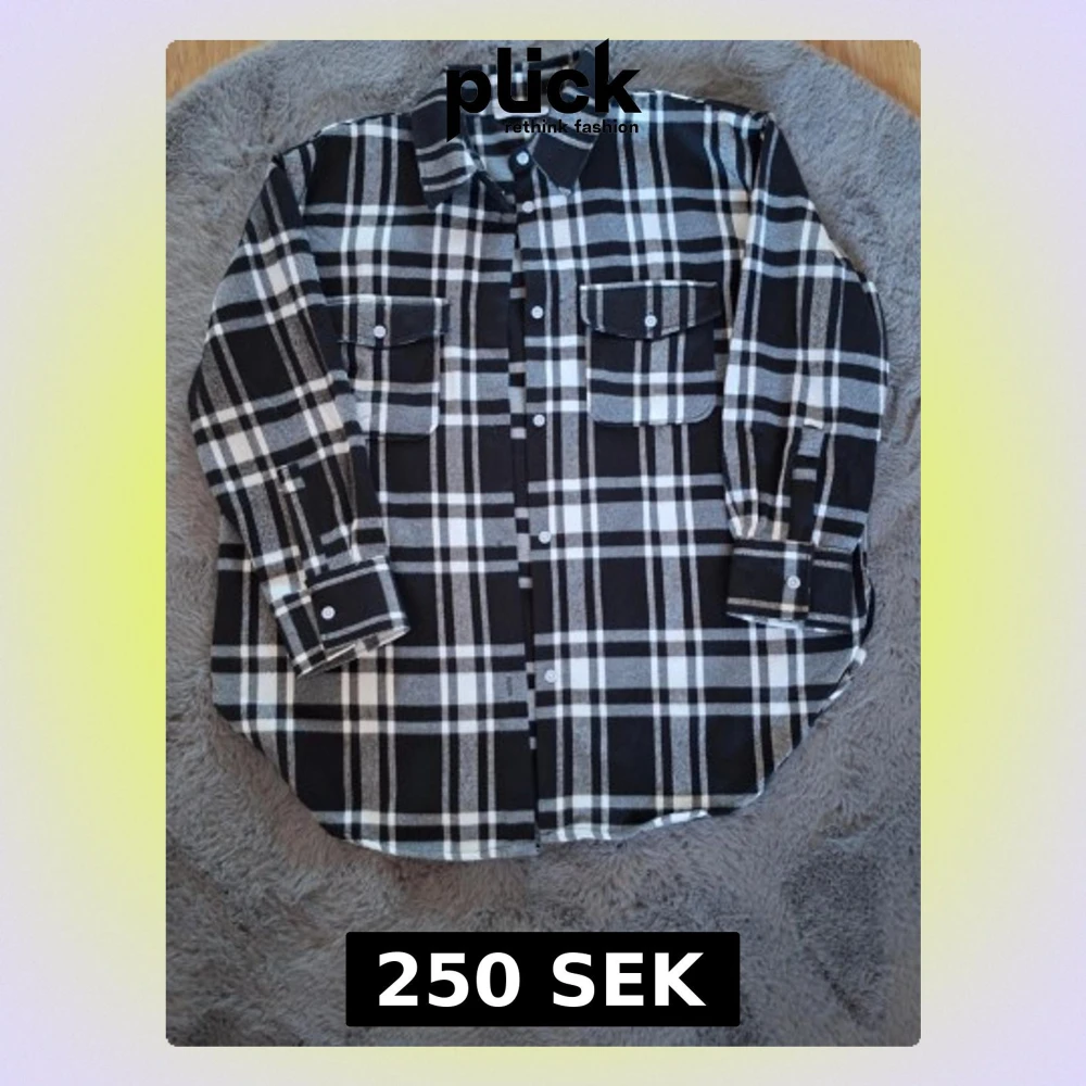 Säljer en svartvit rutig overshirt från Haily's i storlek L. Skjortan har två bröstfickor med knappar, klassisk krage och långa ärmar med manschett. Materialet är mjukt och känns som bomull, perfekt för lager på lager. Stängs med knappar framtill.