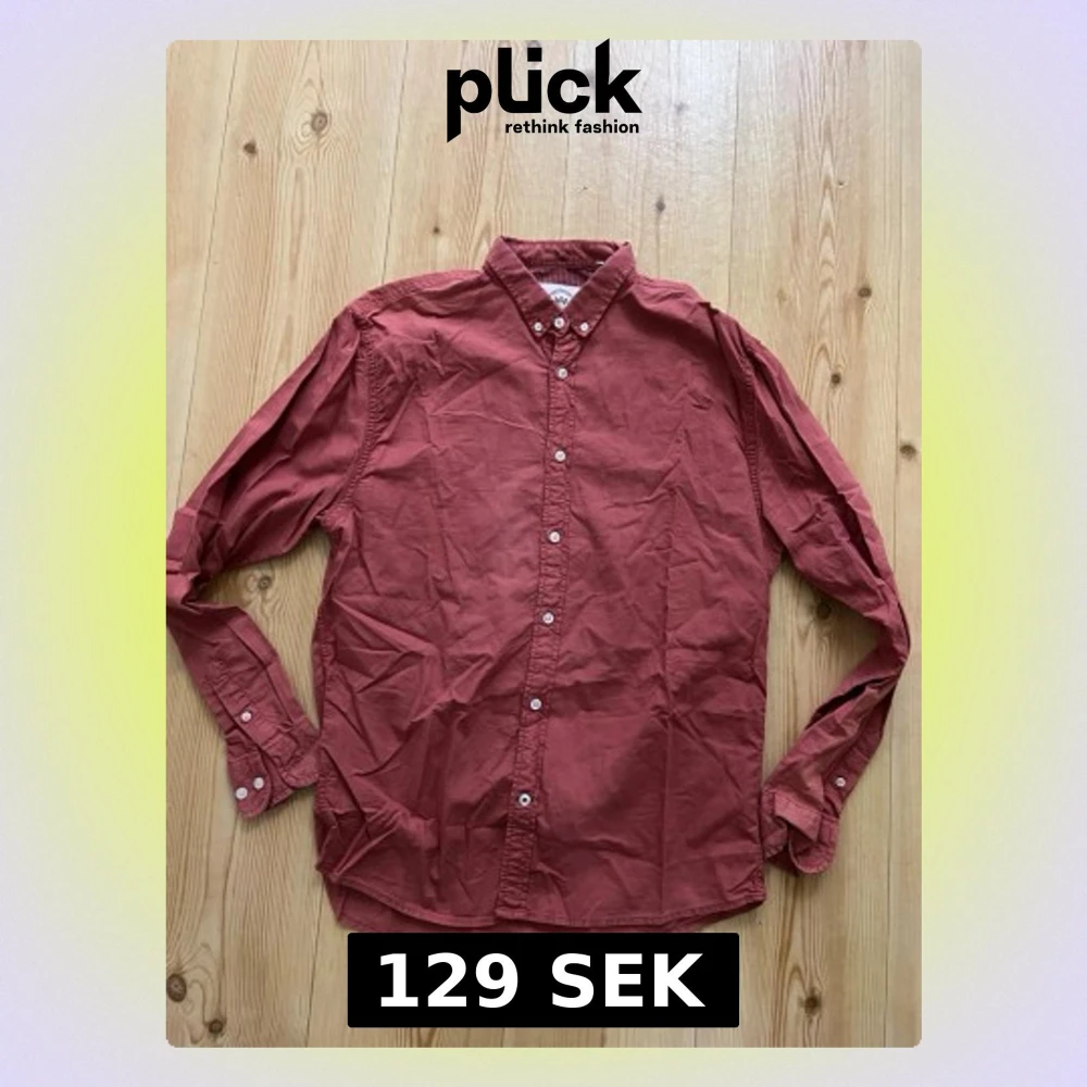 Säljer en röd långärmad skjorta från Kronstadt i storlek L. Skjortan har klassisk krage, vita knappar och är gjord i mjuk bomull. Enkel och stilren design som funkar till många olika looks.