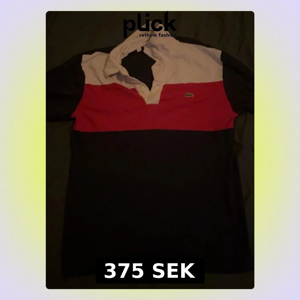 Säljer en snygg henley från Lacoste Collection Anniversaire i storlek M. Skjortan har breda blockränder i vitt, rött och svart, klassisk krage och ikoniska krokodilloggan på bröstet. Tillverkad i mjuk bomull och perfekt för dig som gillar retrovibbar.