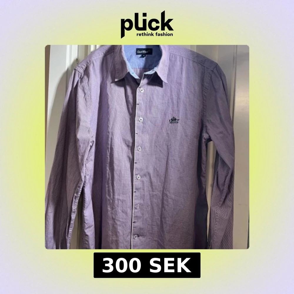 Säljer en stilren lila skjorta från EastWest med diskret randigt mönster och broderad logga på bröstet. Skjortan har långa ärmar och knappar framtill. Perfekt för en snygg och avslappnad look.