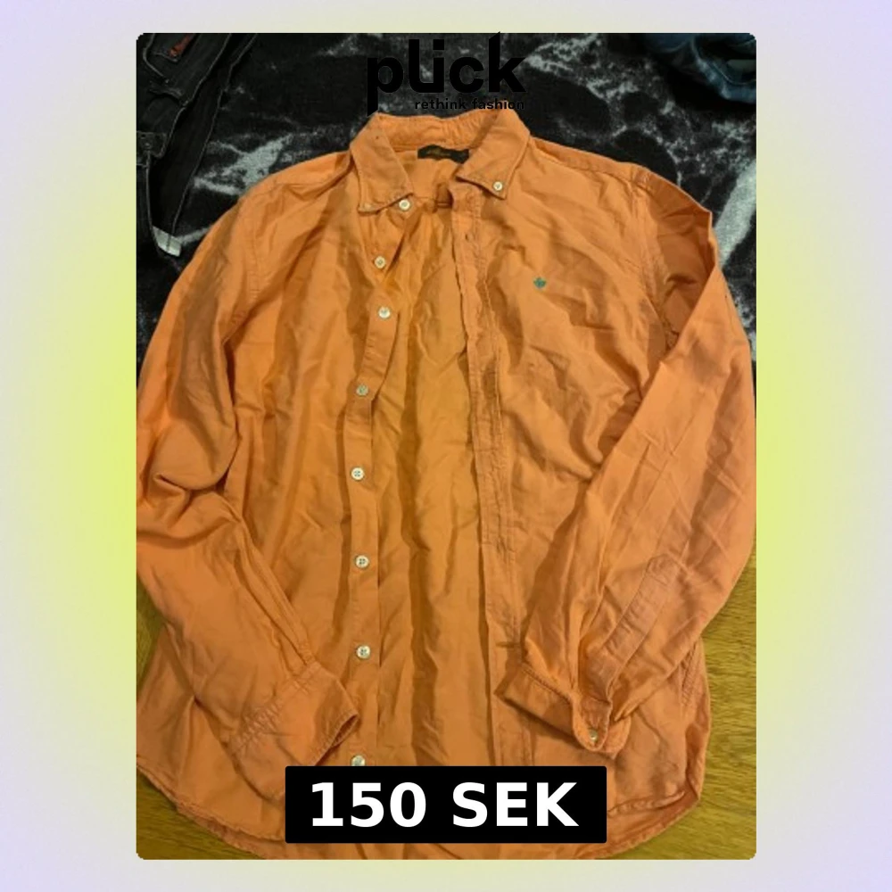 Säljer en orange skjorta från Morris i storlek L. Den har en liten fläck går säkert bort i tvätten