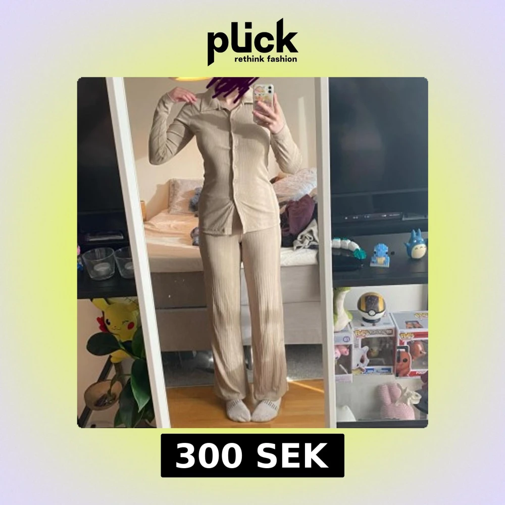 Fint beige set från Gina! Både tröja och byxor ingår i priset🤩 Båda är storleken M, men de är väldigt stretchiga!