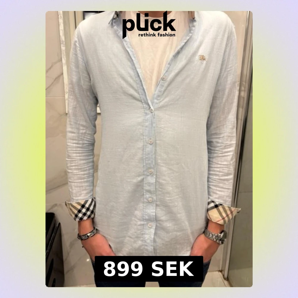 Säljer en ljusblå skjorta från Burberry i linne, denna skjorta är väldigt svår att få tag i och är otroligt snygg, perfekt passform då den sitter perfekt runt kroppen, självklart äkta ✅ använd men inte nått täcken på nått slitage, storlek M men sitter mycket mer som en S skulle säga att den passar dig runt 170 cm lång, hör av dig vid minsta fundering, priset är inte hugget i sten// Noel