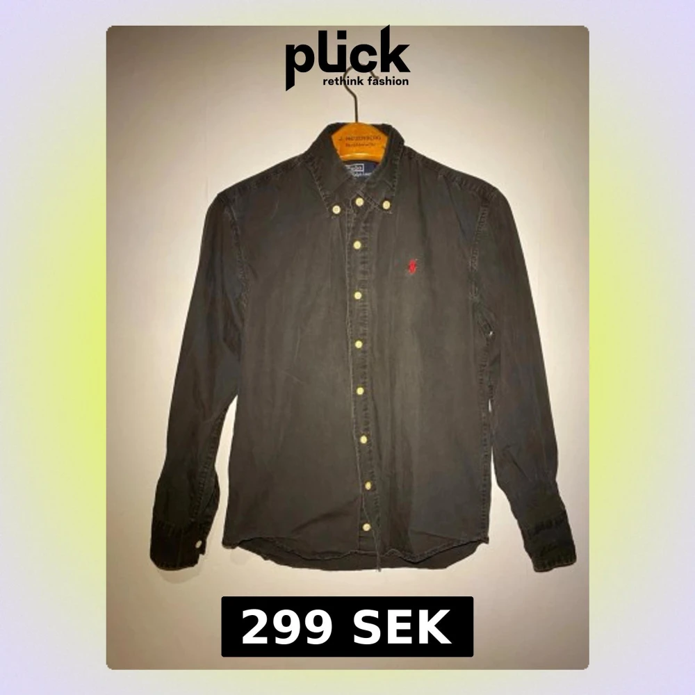 Svart skjorta från Polo Ralph Lauren med klassisk button-down krage och guldfärgade knappar. Broderad röd logga på bröstet. Skjortan är långärmad och tillverkad i mjuk bomull, perfekt för en clean och stilren look. Storlek M men Passar även S