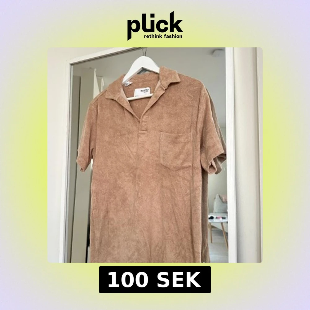 Säljer en beige kortärmad piké från Selected Homme i mjuk frotté. Piken har en öppen krage, bröstficka och avslappnad passform. Perfekt för dig som gillar en chill och trendig stil.