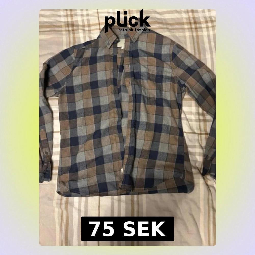 Säljer en rutig skjorta från Ruffle & Bow i brunt, blått och grått. Skjortan har klassisk krage, knappar framtill och en bröstficka. Tillverkad i mjuk bomull och har långa ärmar. Perfekt för en avslappnad och cool stil.