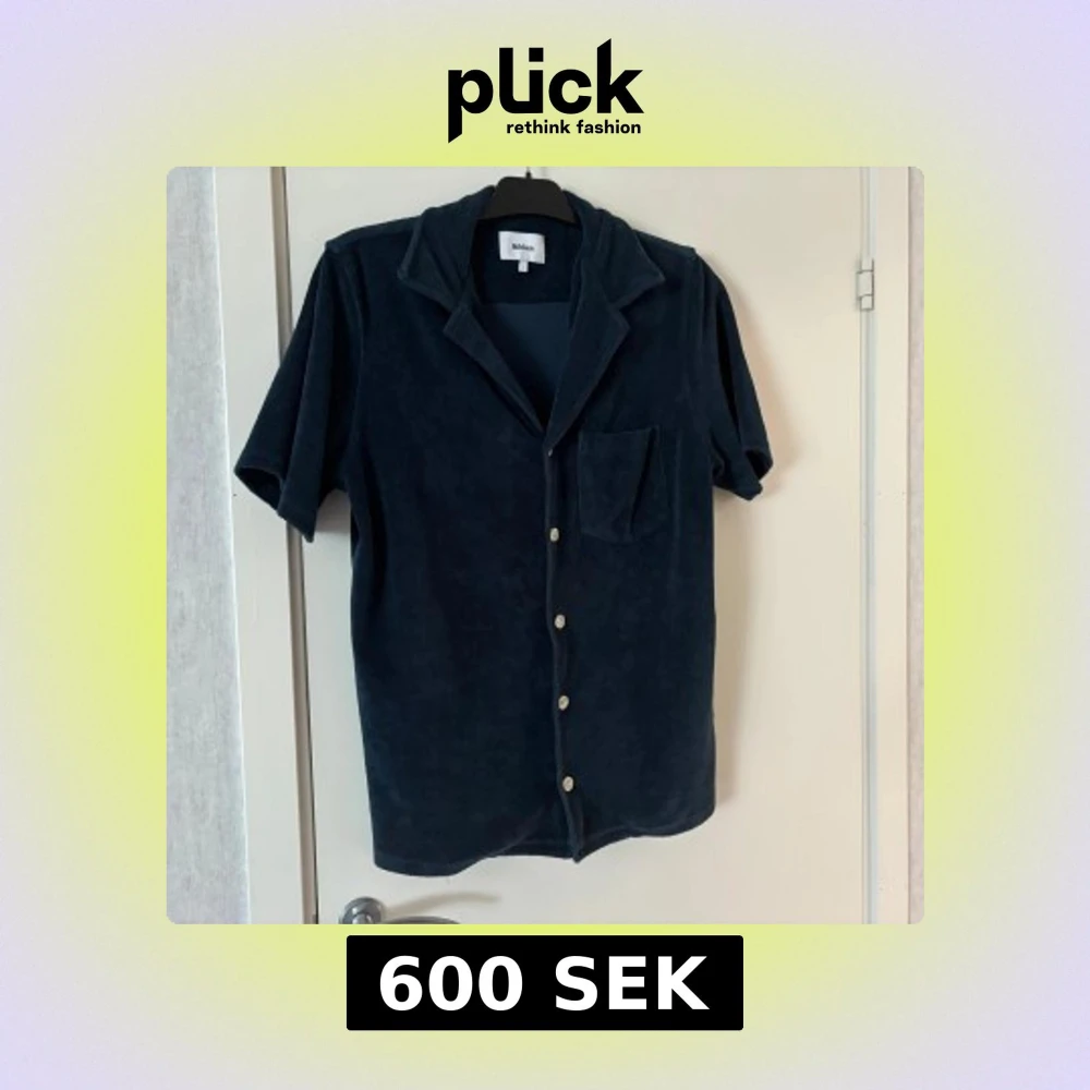 Snygg mörkblå skjorta/overshirt från Nikben i frotté med korta ärmar och knappar framtill. Skjortan har en klassisk krage och en bröstficka för en avslappnad stil. Perfekt för varma dagar eller som ett stilrent lager. Den är endast använd ett fåtal gånger och skicket är 10/10 Nypris 1200